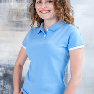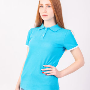 Блакитна з жовтою смужкою футболка поло жіноча CLASSIC