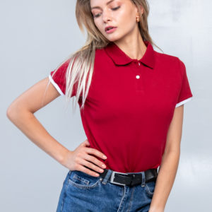Бузкова з жовтою смужкою футболка поло жіноча CLASSIC