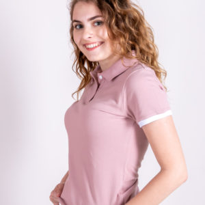 Пудрова з білою смужкою футболка поло жіноча CLASSIC