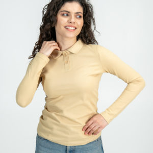 Поло з довгим рукавом жіноче •Відкладний комір в’язаний •Коротка застібка на 2 ґудзики •Модель приталеного крою •Довгий рукав •Без розрізів