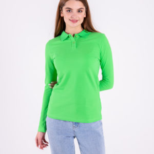 Поло з довгим рукавом жіноче •Відкладний комір в’язаний •Коротка застібка на 2 ґудзики •Модель приталеного крою •Довгий рукав •Без розрізів