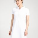 Сукня поло трапецією – вільного силуету. Модель трапеція, довжиною до коліна, з коротким рукавом і в’язаним манжетом, та відкладним комірцем. Відмінний варіант для літніх прогулянок. Дуже зручно, зовсім не стискує руху при ходьбі і практично не відчутно на тілі. Сукня трапеція є відкритим викликом жіночності, адже його основне завдання – наголосити на «потрібному» і сховати «зайве».