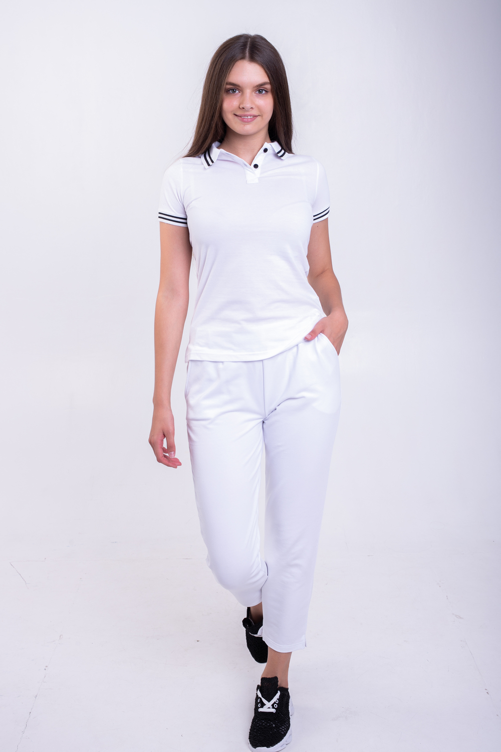 Штани трикотажні жіночі. Дана модель має вмісткі кишині, верх виробу на зручній резинці, прямого кроя, трішки завужені до низу. Внизу штанини розрізи. Дуже зручна модель, як для повсякденого використання, так і для занять спортом, якщо зверху одягнути піджак – дані штани виглядають як класичні. Дуже великим попитом користуються у лікарів. Коліна не витягуються, довго мають первісний вигляд, навіть при частому пранні тканина не кашлатиться і має насичений колір.