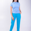Штани трикотажні жіночі. Дана модель має вмісткі кишині, верх виробу на зручній резинці, прямого кроя, трішки завужені до низу. Внизу штанини розрізи. Дуже зручна модель, як для повсякденого використання, так і для занять спортом, якщо зверху одягнути піджак – дані штани виглядають як класичні. Дуже великим попитом користуються у лікарів. Коліна не витягуються, довго мають первісний вигляд, навіть при частому пранні тканина не кашлатиться і має насичений колір.