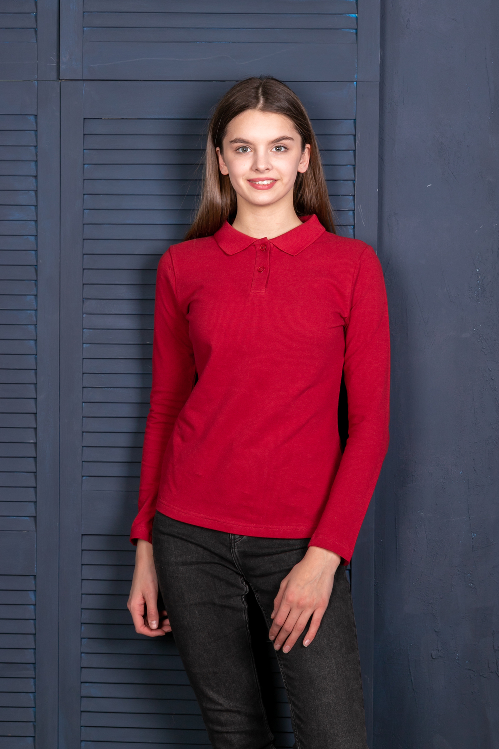 Поло з довгим рукавом жіноче •Відкладний комір в’язаний •Коротка застібка на 2 ґудзики •Модель приталеного крою •Довгий рукав •Без розрізів