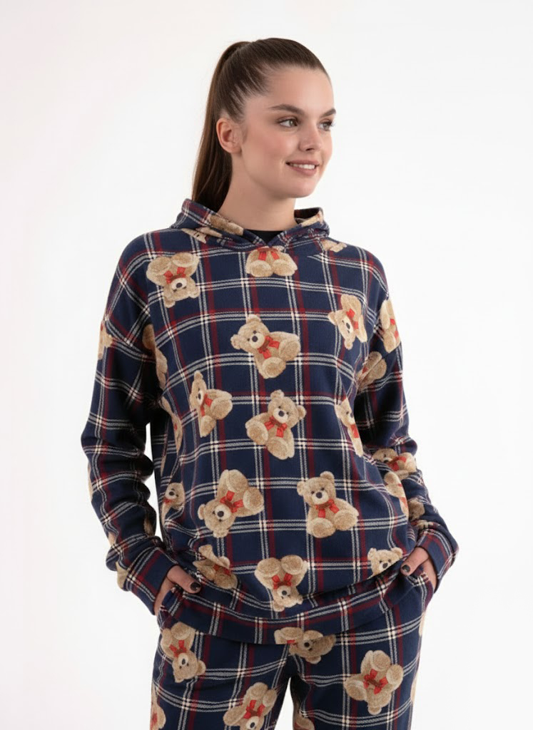 Комфортний домашній комплект: штани+худі+футболка. Комплект чудово підійде і для дівчат і для хлопців. Худі з капюшоном, футболка вільного крою, штани прямі з карманами, пояс на резинці. Піжамний комплект – це не тільки одяг для сну, а й зручний одяг для дому.