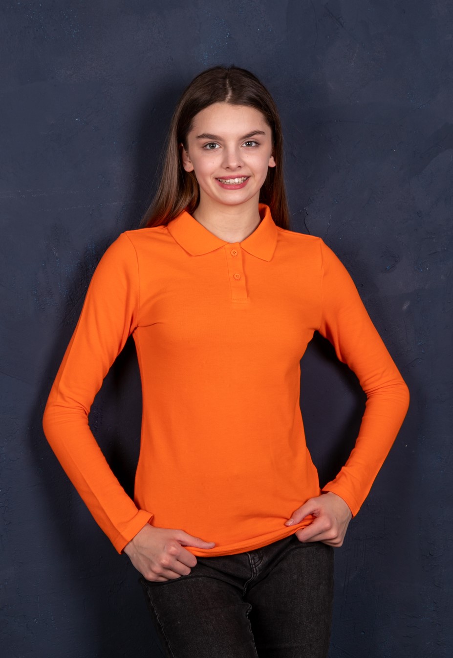 Поло з довгим рукавом жіноче •Відкладний комір в’язаний •Коротка застібка на 2 ґудзики •Модель приталеного крою •Довгий рукав •Без розрізів