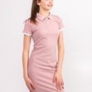 Сукня-поло жіноче вбрання у стилі casual. Просте по крою, але досить цікаве. Стильний, зручний та практичний варіант на кожен день. •Відкладний комір в’язаний •Коротка застібка на 2 ґудзики •Модель приталена •Короткі рукава з білим манжетом резинкою