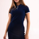 Сукня-поло жіноче вбрання у стилі casual. Просте по крою, але досить цікаве. Стильний, зручний та практичний варіант на кожен день. •Відкладний комір в’язаний •Коротка застібка на 2 ґудзики •Модель приталена •Короткі рукава з білим манжетом резинкою