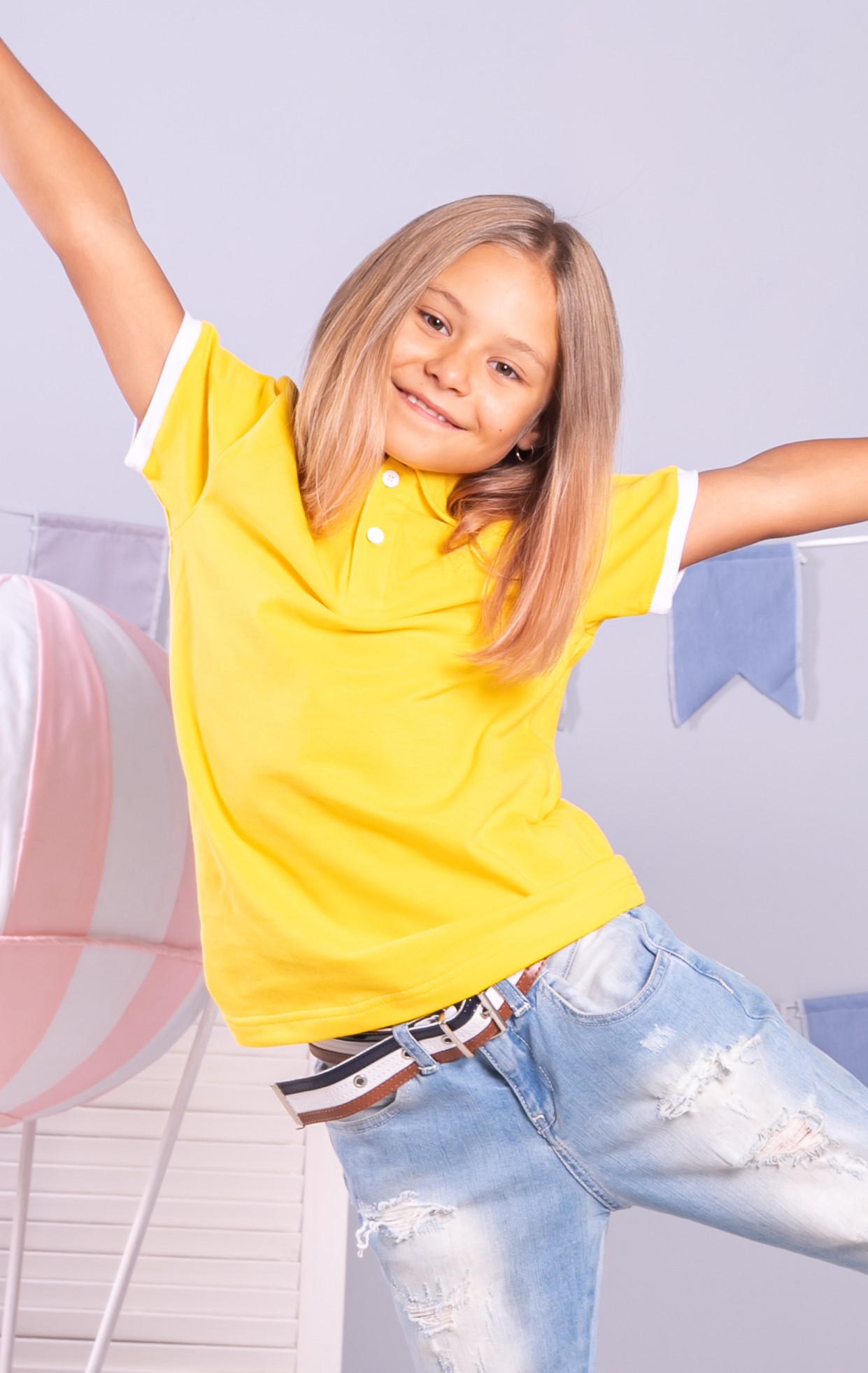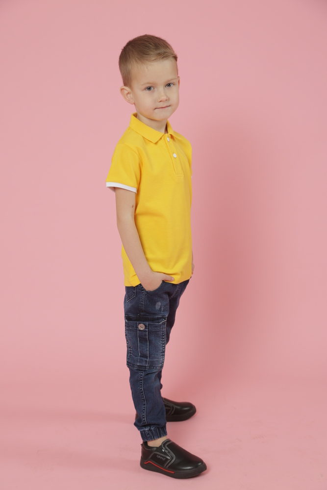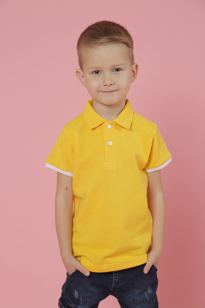 Стильна футболка для Вашої дитини. Модель підійде під будь-який одяг з гардеробу: бриджи, брюки, джинси, а також незамінний атрибут шкільної форми. Натуральна тканина надасть можливість комфортного відчуття всіх рухів тіла •Відкладний комір з основної тканини •Коротка застібка на 2 ґудзики •Модель прямого крою (унісекс) •Короткі рукава з білим манжетом резинкою •Без розрізів